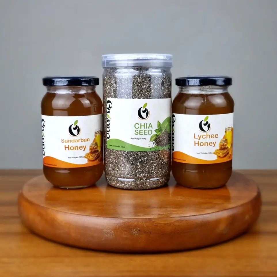 সকালের শুরুটা যদি হয় বিশুদ্ধতায় — তাহলে সারাদিনটাই হবে প্রাণবন্ত! 🌤️ অভিন্ন মর্নিং কম্বোতে পাচ্ছেন ✔️ ৫০০ গ্রাম চিয়া সীড ✔️ ৫০০ গ্রাম সুন্দরবনের মধু ✔️ ৫০০ গ্রাম লিচু ফুলের মধু